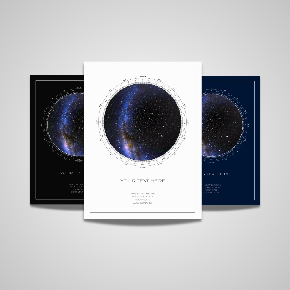 We render a perfectly accurate telescopic image from the software that powers planetarium projectors for these stunning prints of what the night sky actually looked like at your chosen time and place.