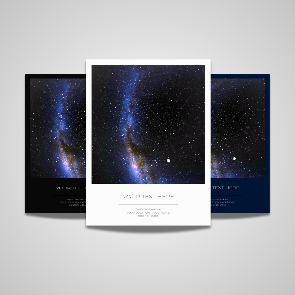 Capture the night sky from that moment when the stars aligned, and you realized your world had changed forever. Don’t settle for star maps that look like clip art. Get the real stars above your exact location on your chosen date.